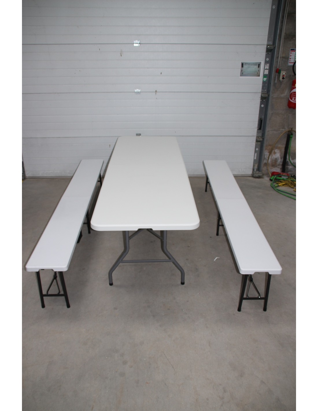 Table en pvc : 240 cm de long, 75,5 cm de large, 74 cm de haut