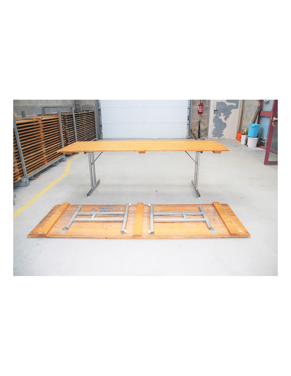 Table en bois : 240 cm de long, 80 cm de large, 73 cm de haut